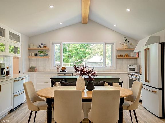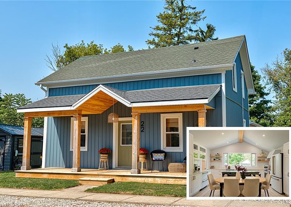 FULLY RENOVATED ON 0.2 ACRES! Welcome to 22 River Street, a gorgeous 3 Bed 2 Bath detached home extensively updated in the last few years. Located in quiet Bloomingdale, as you arrive at the property you will notice the charming full width covered front porch (2024), new siding and new exterior lighting (2021). Heading inside, prepare to be impressed – greeting you is an open concept bright and airy main living area with a 10’6” foot cathedral ceiling and beautiful views to the outdoors. The stylish kitchen deserves its own mention with extensive cabinetry (2021), quartz countertops (2021 & 2024), a 6+ foot island, two separate sinks, and a full suite of GE Café appliances including double beverage fridge drawers (2021). Other features on the main level include a main floor primary bedroom complete with a walk-in closet and 5-piece ensuite bath (2021), new flooring (2021), pot lights (2021), main floor laundry (2021), and a solid oak staircase with iron balusters (2022). Heading upstairs you will find an additional full bathroom (2021), new flooring (2021), two bedrooms, flex space, and a special play nook for children or pets. The basement level is partially finished offering additional flex space and storage. Outdoors is an entertainers dream with a hot tub (2022), large deck (2022), and fenced yard with plenty of room to play. A 19’ x 25’ garage with hydro is ideal for storage or perhaps a large workshop. Additional features of this property not immediately noticeable are the new iron water filter (2024), owned hot water tank and water softener (2021), all new interior drywall, doors and trim (2021), and Smart Home system that can program your lighting, thermostat and door locks via an app. Lastly, the location of this home is fantastic, just a few minutes drive into Waterloo for all amenities while providing the peacefulness of country life. Don’t miss the virtual tour!