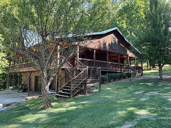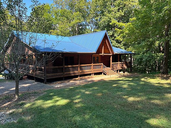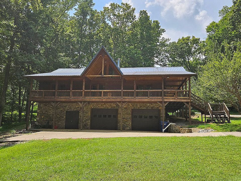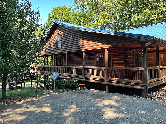 Waterfront Cedar Log Home on Lake Barkley with 4 bedrooms, 4 bathrooms on 4500 square feet. Granite countertops, double convention ovens, stainless steel appliances, thermal pane windows and doors, and finished lower level. Beautiful stone fireplace and wood burning stove keep utilities low. Wrap around porch with 3 car garage and 38 x 18 paneled workshop all on one-acre double lake lot with boat slip and handicapped accessible. Home upgrades in 2025 of 25K. Home can also become a money maker if placed on VRBO, and home sold furnished and move in ready. A must see and price reduced when placed on Zillow by owner. Excellent family retreat for those special moments to share with the relatives and grandchildren. Video of home forthcoming.
