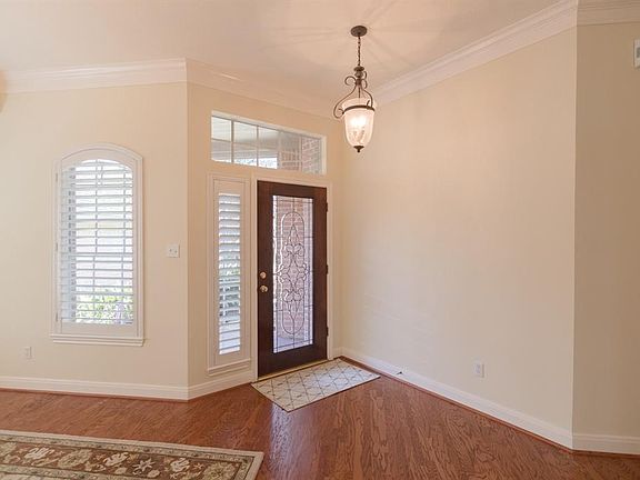 Lovely Village Builders La Paloma patio home, open floor plan with high ceilings, crown molding, and wood flooring. Spacious island kitchen with Corian counter tops. Master bedroom suite features his and her walk-in closets. Built-in bookshelves and French doors in the study.