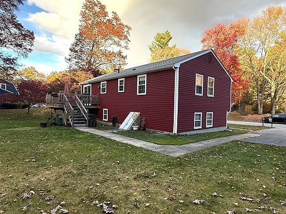 Welcome to this beautiful home located on a cul-de-sac in desirable North Bellingham neighborhood. This 3 bd, 1 bth split ranch sits on almost 2 acres, with private trails to water access of Beaver Pond. Imagine canoeing and fishing in summer and skating or hockey in winter, right in your own back yard. Gleaming hardwood, and tile floors. Updated, roof, clapboard, front door, slider door, bathroom, kitchen, hot water heater, refrigerator, and some windows through out main floor within the last 5 years.  Cozy fireplace in living room and wood stove in basement. Bright and sunny open concept in kitchen/dining/living areas. Enjoy morning coffee on the back deck or grilled dinners in the evenings.  Lots of potential in the unfinished area of basement, to add a garage or more living space. Wild life in and around the yard is pretty awesome. This home is truly a Nature Lovers Dream!