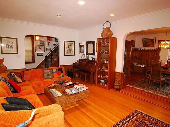 This charming 3 br, 1.5 bath Tudor has old world charm with all the modern conveniences . Original architectural features bring warmth to this well maintained home. Fireplace in the living room and a bonus room which overlooks a huge deck.The rear yard is level with mature trees. The attic has a full staircase with lots of extra closets. Finished basement. Walk to train and parks.