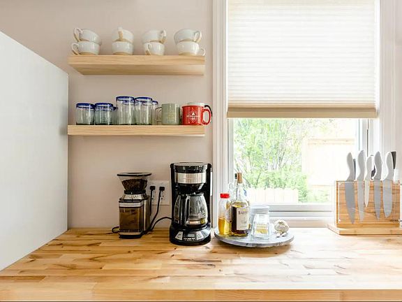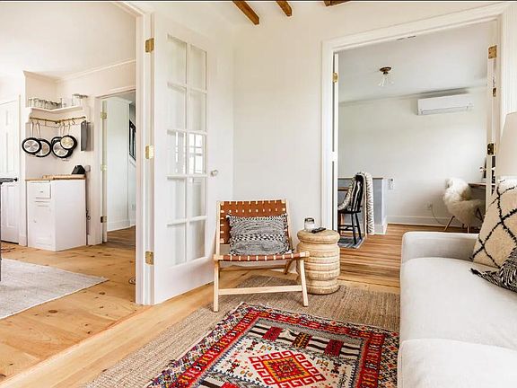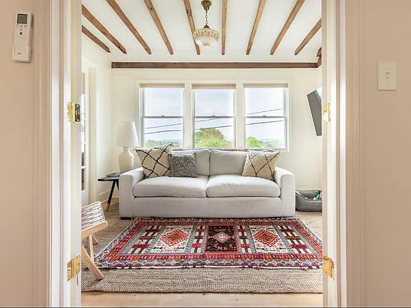 Built in 1946 and lovingly reimagined in 2021 from the ground up, this cozy cape leaves no detail overlooked! This sun-filled, peaceful and airy mid-century gem is just a stone's throw from the vibrant Midtown Arts District in the heart of Kingston. Proudly perched atop a rocky knoll on a quiet street in a friendly neighborhood, its calming and sweeping vistas overlook the city's varied rooftops and afford beautiful sunset and Catskill Mountain views to the West. The space Once inside, you're immediately struck by the wide variety of caring, curated design choices over all three floors. On the main floor, enjoy cooking or just hanging out in the new kitchen featuring a Fisher Paykel refrigerator, NewAir beverage refrigerator (filled with wine and beer for your enjoyment), deep stainless steel under mount sink with wall-mounted, pot-filler faucet, butcher block countertops, and hand-painted tile backsplash. There is a dining room with space for a big table (the current occupant has a table for 8!) where you can enjoy your meal, work or just relax with your favorite game or puzzle. Nearby, a tailor-made built in has a dedicated work space and bar area. Upstairs, the new bathroom features painted porcelain floor tiles and a vintage cast iron tub, complete with a rain shower head and towel warmer. Both bedrooms can fit queen or king beds, plus space for dressers and desks. Out back, step out onto the large stone patio just outside the kitchen door, perfect for dining al fresco or enjoying your morning coffee. Close by, a hand-sculpted cement staircase whimsically bridges a swath of exposed rock face - connecting the patio to the spacious, private, raised, rear yard...perfect for relaxing, entertaining and watching the sunset. This property is available for a year lease, unfurnished.