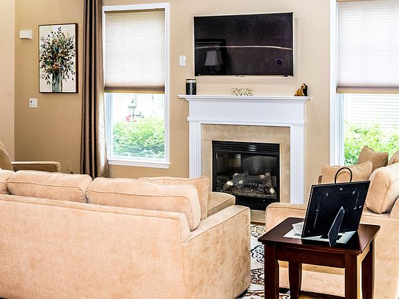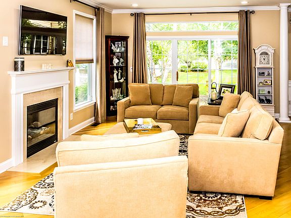 Stunning 3 BD 3.5 BTH End Unit in luxury waterfront community. Open floor plan w/diagonal cut hardwood flrs. Gorgeous upgraded kitchen w/ 42 Wellborn cabs w/under/over LED lighting, granite tops, glass tile backsplash, 2 yrs SS KitchenAid applcs, breakfast isle & pantry. Spacious living room w/gas fp & sliding door to private patio w/gas line for BBQ. Grand Master Bedroom w/cathedral ceilings, sliders to balcony offering views of Raritan Bay, large WIC w/organizers. Master Bath w/jetted tub, shower stall, 2 sinks, heat lamps & linen closet. 2nd flr laundry. Finished basement w/gas fp, office, rec room, full bath & storage area. 2 car garage. Recessed LED lighting, base/crown moldings, security system, whole house surge protector.