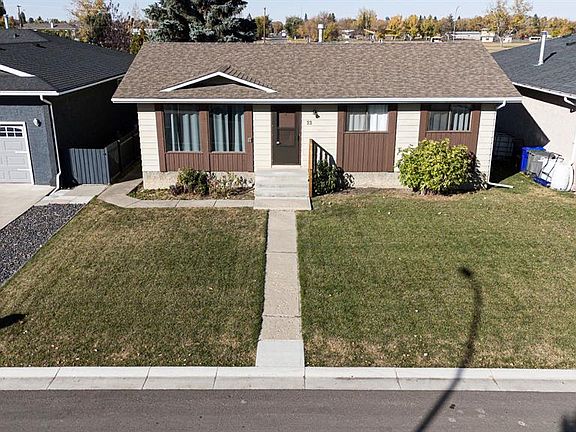 Charming Bungalow Near the Golf Course Located just a couple blocks from the beautiful 18-hole golf course, this well-kept bungalow offers a great blend of comfort and potential. The main floor features three bedrooms, updated 4pc main bath, laminate flooring throughout, and a bright, spacious living room with large south-facing windows that fill the home with natural light. The dining area offers plenty of space for family gatherings, while the cute corner kitchen includes room for a breakfast table—perfect for morning coffee or casual meals. Primary bedroom has a 2pc ensuite. Downstairs, the basement is ready for your finishing touches, with a framed-in rec room, laundry area, and storage space—plus room to add additional bedrooms if desired. Outside, you’ll find a generous backyard with a ground-level patio and ample space to create your dream garden or outdoor retreat. Move-in ready with quick possession available—this home is a wonderful opportunity to enjoy small-town living close to the golf course and all local amenities.
