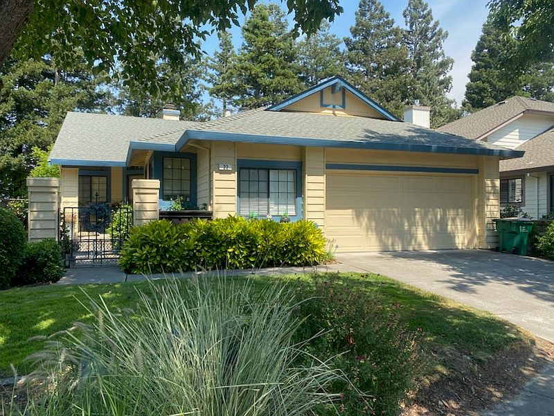 Great single level home in Chanterelle in a cul-de-sac. 55+ Community set on an extra large lot, surrounded by beautiful landscaping that is flower filled most of the year along with a large deck with wisteria covered pergola, nice for outdoor living. Nice interior paint, Cathedral ceilings, carpet in bedrooms, hard surface flooring elsewhere. 2 large bedrooms, 2 full bathrooms, the master has 2 closets and one full bathroom, large living room with a gas fireplace. Kitchen comes equipped with an electric range, D/W, refrigerator, Microwave and trash compactor, dining area also, ample cabinet and counter space. A/C, W/D included in a laundry room, 2 car garage. The Chanterelle community offers a beautiful newly remodeled clubhouse with a kitchen (available for private rental) Gazebo and BBQ plus a swimming pool/spa and lots of social activities throughout the year, very close proximity to the house. Owner pays HOA and Gardening service. Dogs allowed but please no cats. Tenant pays all utilities, 1 year lease, available 11/10/2025. Please do not disturb current Tenants, call for an appointment to view.