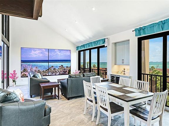 RATES AND AVAILABILITY VARY. AVAILABLE SEASON 2026! Welcome to a completely renovated, light-filled penthouse in the exclusive Sandy Cove community where coastal design meets breathtaking Gulf views in every direction. This professionally managed 3-bedroom, 3-bath residence is fully turnkey furnished and thoughtfully designed for relaxed, upscale living. Every inch of the home has been updated with all-new finishes, furnishings, and a refined coastal palette that creates a bright, airy atmosphere. Multiple balconies offer seamless indoor-outdoor living, including a private balcony off the primary suite perfect for enjoying expansive views of the Gulf, Lido Beach, and the Downtown Sarasota skyline. What makes this unit even more unique is its personal exterior camera system, which provides a live, panoramic view from behind the exterior walls. It gives you a remarkable visual connection to the beach and water, even from inside the unit maximizing the sense of space and view in a way most properties simply can't. Sandy Cove offers a private beach for residents and guests, ideal for dolphin watching, boat spotting, and soaking in Sarasota's iconic sunsets. You're just moments from the vibrant shops and restaurants of Siesta Key Village and a short drive from all the culture, dining, and entertainment of Downtown Sarasota. Whether you're here to relax, entertain, or explore, this one-of-a-kind penthouse delivers an unforgettable Siesta Key experience turnkey, elevated, and unlike anything else on the market.