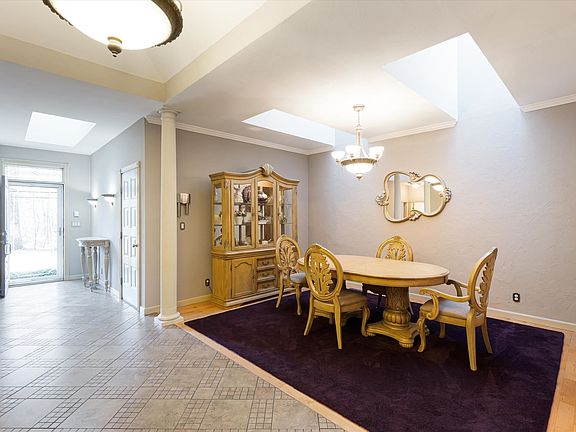 Prepare to be pleasantly surprised by 3,500+ sf of combined finished space that blends generous proportions with an inviting ambiance. Beyond its subtle exterior lies a thoughtfully designed interior that prioritizes comfort and seamless flow. This custom-built hip roof ranch is bathed in natural light, thanks to an abundance of windows and skylights. Designed with family in mind, the efficient floor plan provides plenty of room for gathering and entertaining. The formal dining room transitions into a cozy living area with a gas fireplace, leading to the eat-in kitchen with a breakfast nook overlooking the backyard. The kitchen features custom cabinetry, a double wall oven, countertop seating, and a convenient corner walk-in pantry with laundry facilities. In the quiet rear of the home, the oversized primary bedroom impresses with its elegant tray ceilings, en-suite bath featuring a jacuzzi tub, newly updated glass encased shower with spa-like fixtures, plus a walk-in closet. Two additional bedrooms and a full bath complete the main level. The finished basement offers a massive recreation room with limitless potential and offers ample storage space. Relax year-round in the enclosed porch, which opens to a brick patio and landscaped yard for added privacy. With space and amenities for everyone to enjoy, this home is truly one of a kind.