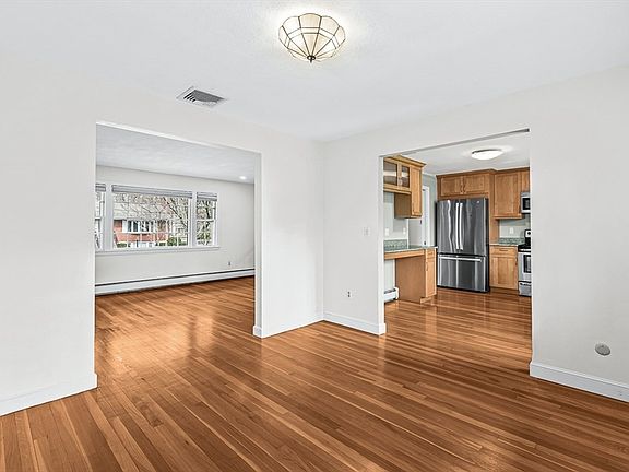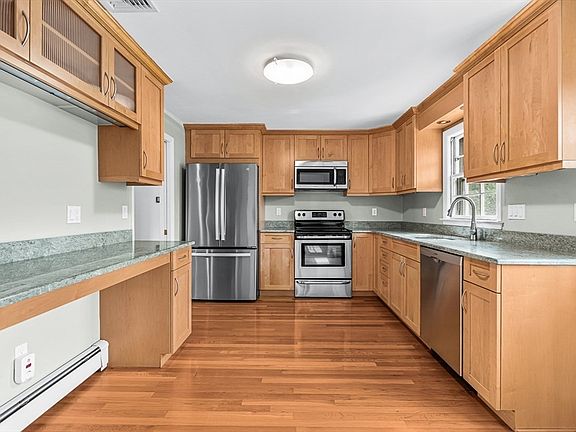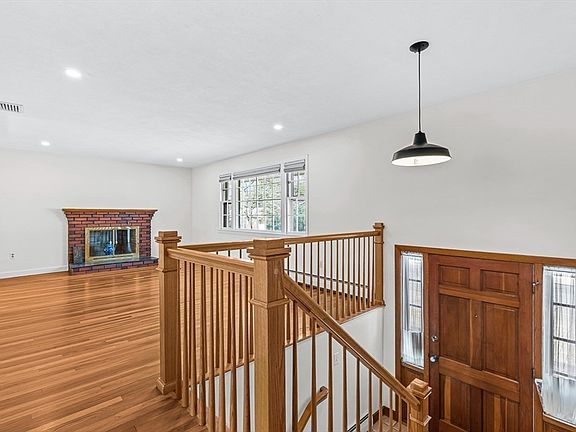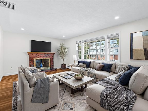 Come fall in love with this handsome brick and wood sided, immaculately maintained raised ranch on a residential side street in beloved Newton Lower Falls with wonderful proximity for commuting. The main level greets you with rich hardwood flooring throughout, a spacious living room with brick fireplace, a formal dining room and a large renovated kitchen with solid wood cabinetry, granite countertops, built in desk and stainless steel appliances. There are 3 sizable bedrooms on this level and a pristine vintage tiled full bath. The walk out lower level features a large recreation room, laundry area and storage room, an additional bedroom and bath, plus access to the attached garage. Outside the composite deck and large flat backyard beckons you for outdoor relaxation, recreation and entertaining. Seller has recently repainted inside and out, added on demand water heater & furnace, installed recessed lighting, new light fixtures and more. Come experience the charm of 22 Sherrin Road.