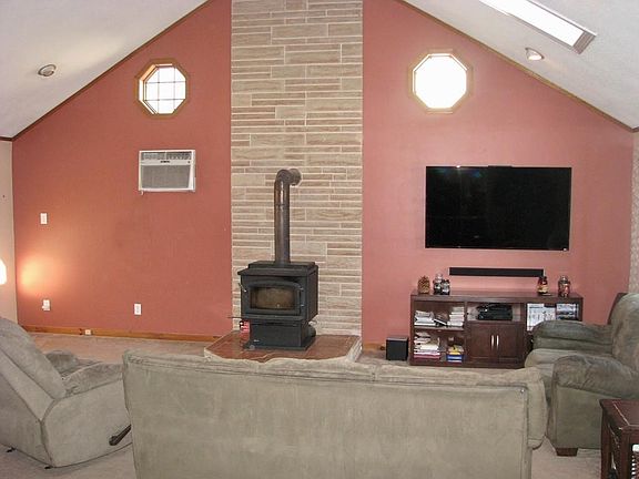 - Liv Dscrp: Flooring - Wall To Wall Carpet, Window(s) - Bay/Bow/Box, Ceiling - Cathedral, French Doors, Skylight, Closet, Wood / Coal / Pellet Stove, Sunken