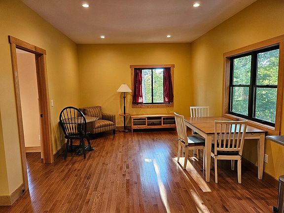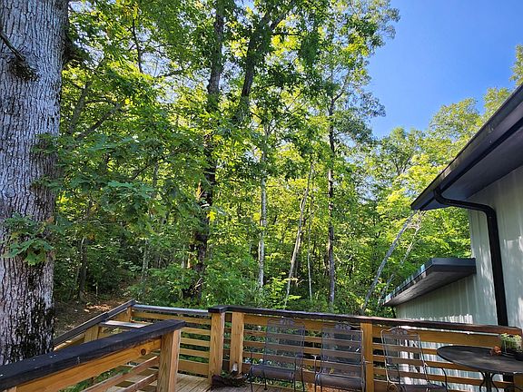 Private garage apartment with separate driveway and parking area, private deck at entry. One bedroom, one bath and full kitchen. 9 foot ceilings, beautiful views, plus hard wood floors. Access to washer and dryer in garage beneath. No pets, no smoking please. This newly built (2022) home comes furnished with a queen bed, side tables, kitchen table and living room furniture but no couch. Located 5 minutes from downtown Black Mountain. Hiking and biking trails from your door! No smoking on or in the property.