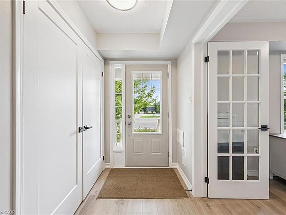 Motivated Seller ! Welcome to this spectacular 3 level, just like a semi Detached end-Unit Townhome in the Charming quiet town of Waterdown! Over the three levels there is 1900 sq.ft. of living space.Professional Painted in neutral colours with numerous upgrades including quartz counters, pot lights, upgraded Black lever hinges and handles and plumbing Fixtures.The ground floor encompasses vinyl flooring with an upgraded designer laundry room with new front load washer / dryer + Wood counter + Sink and shelving. Super useful Large storage area with a separate office with French doors that can be used as a 4th. Bedroom. Internal access to stunning oversized double garage fully painted with an epoxy floor.The main level incorporates the upgraded kitchen with S/S appliances, quartz counter with floating island. The powder room has a ship lap feature wall with new vanity and vinyl floor. The bright natural sunlight exudes an abundance of light in the Living and Dining area which encompasses a feature wall and pot lights. This leads via a sliding patio door to the large 20 x 12 ft. deck with a Gazebo and privacy blinds.The third level has a Primary Bedroom with ensuite 3 pice Bathroom (Quartz Counter and glass shower) and walk-in closet. Good sized 2nd. and 3rd. Bedrooms. The main bathroom has 4 pieces including a tub and Quartz Counter top.Commuters have many options -Minutes to GO station, 407 and QEW highways and a short drive to Burlington waterfront. This property should showcase in any designer magazine and the owner has meticulously upgraded and maintained the property since new.This property will not last long as it shows 10+++!