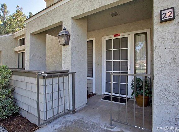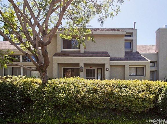 Fantastic updated turnkey townhome in the highly desirable Woodbridge Chateaux community! Light and bright 2 bedroom + office/den and 2.5 bath home that looks out to Springacre Park. Updated features include travertine tile flooring in the entry and kitchen, beautiful hardwoods throughout the rest of the house, remodeled kitchen with granite counters, new stainless appliances, custom tiled baths, newer master dual sink vanity, and bath fixtures. The living room is light and bright with skylights, French doors to the atrium, 2 story vaulted ceilings, and a cozy fireplace. The spacious enclosed private atrium is yours to make your own oasis. The downstairs bedroom is opened up to make an office/den currently but could be a 3rd bedroom. There is also a convenient inside laundry room downstairs. Both bedrooms upstairs have their own full bath. The larger master features a custom dual sink vanity, large mirror, and custom stone tile. There is also a 2 car garage with new steel panel door. Enjoy all the nice amenities that Woodbridge has to offer with award winning schools, pools, parks, and convenience to shopping, freeways, entertainment. Come see for yourself, you will not be disappointed!!!