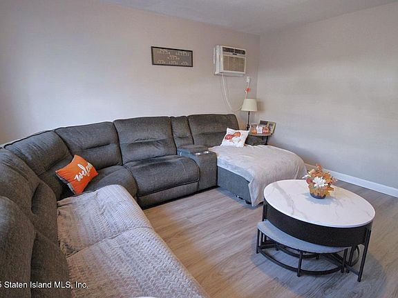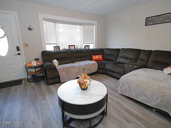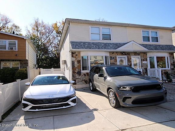 Beautiful one-family semi-attached home located in the desirable Great Kills neighborhood. This well-maintained property features 3 bedrooms and 3 bathrooms. Laminate wood flooring thruout. First floors boasts Living room, 1/2 bath and eat in kitchen with an island and sliders to yard. Dining room was converted to an additional room but you can convert it back. 2nd floor 3 bedrooms and full bath. Pull down attic stairs for storage. The finished basement includes a summer kitchen, 2 rooms, 3/4 bath and a separate entrance. Yard has an above ground pool with deck and patio area for entertaining. Pvc fence encloses the yard. Conveniently located to all. New roof, furnace and hot water heater