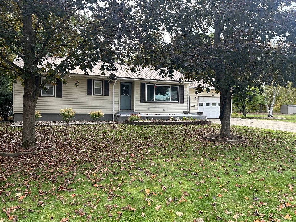 Custom 3br/1bath Ranch with 2 lots. Featuring Custom Kitchen with Appliances-Hardwood Floors throughout, New Windows, Metal Roof, 1.5 Attached Garage, Living Room with bay window, Patio, Front Porch, Storage Building for Lawn Equipment and boat, fenced, in yard, Landscaped, Garden Space, Generator, Full basement with garage access, perfect for storage or workshop.