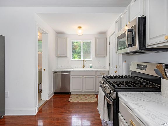 Take a step inside this beautifully transformed cape centrally located between Beacon and Fishkill. With only a 5 minute drive to each downtown and zoned for Beacon schools, this home offers the best of both worlds while being perfectly nestled on a bucolic street. A quaint, private backyard cloaked in trees with an oversized deck provides an outdoor entertaining haven with endless possibility for green thumb enthusiasts. Inside, this house has been touched top to bottom and features a host of stylish updates including, but not limited to a new roof, int/ext painting, fully renovated kitchen and first floor bathroom, new oil tank, hot water heater, sump pump, Mitsubishi split units, bedroom carpet, front porch, seamless gutters, window treatments, light fixtures and brass hardware throughout. The open layout is cheerful and bright, enhancing the modern updates. The kitchen, living/dining room, bedroom and full bath complete the first floor, while the second boasts two additional bedrooms including the master with its full en suite bath and walk-in closet (which can also function as an office/nursery or general bonus room). This home also features a one car detached garage. This turn key home in its prime location is a treasure and not to be missed!
