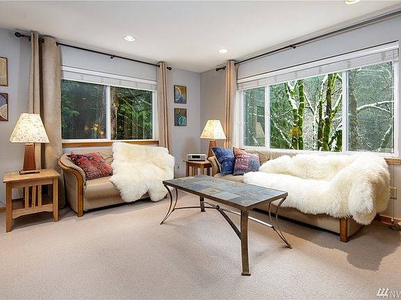 Larger four bedroom home surrounded on all sides by lush green space. Direct access to trailhead to Strawberry Point. Private covered deck off of main living area w/ serene forest views. Spacious open living space w/ cozy gas fireplace. Stainless steel appliances & granite counter tops. Radiant floor heating throughout. Primary bedroom has en suite w/ separate tub & luxury walk-in shower w/ shower bench. Lower bedroom & full bath is perfect for home office away from main living space or private guest space. BONUS! 400 sq ft workshop with double door outside access. Includes a whole house generator. Ample storage throughout. Community amenities include 24/7 security, two pools, fitness center, parks, lake access, dog park & more.