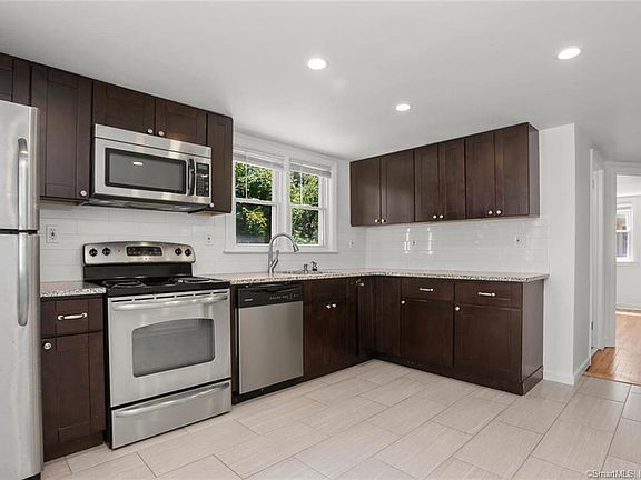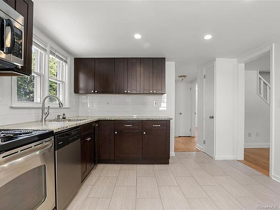 For rent beginning October 15, 2025 is an adorably renovated cape cod style home in a sought after neighborhood in Norwalk, close to area amenities and in an easy commutable location! The updated eat-in kitchen features tile flooring, stainless steel appliances, modern cabinetry, granite countertops and a pantry. The main level has refinished hardwood flooring throughout, a spacious living room, full bathroom and two good size bedrooms. Upstairs features brand new carpeting and another full bathroom. Both full bathrooms are beautifully renovated and the whole home has been painted! The lower level has a laundry room and a finished bonus space, perfect or an office or playroom. Storage and one car garage access is also in the lower level. This home has newer HVAC and vinyl replacement windows! Tenant is responsibly for lawn care and snow removal, however for an additional amount in rent the landlord can handle it for them! Tenant is taking the pool with him and the backyard will be reseeded. Window unit AC's are for tenant use.