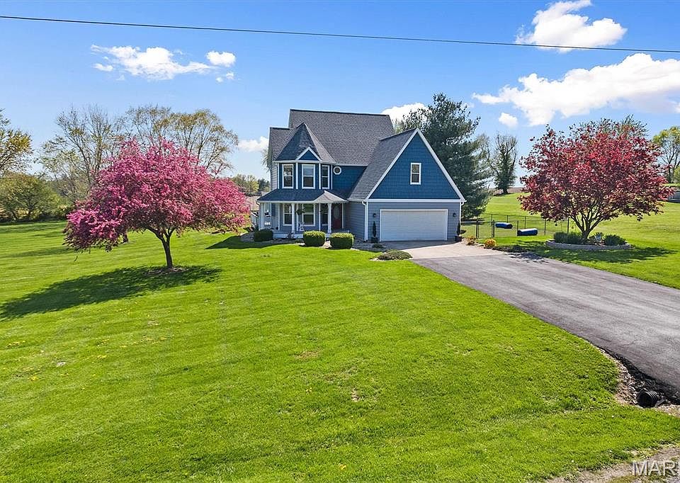 Nestled on 2 acres adorned w flowering trees & peaceful views, charming 2-story home blends spacious living w the beauty of rural life. Step inside to a large open entryway that flows seamlessly into the living room, dining area, & kitchen. Perfect for entertaining or enjoying cozy evenings at home. The natural light pours through the windows, highlighting the open-concept layout & offering inviting views of the surrounding landscape. Upstairs, you'll find three comfortable bedrooms, including a spacious primary suite that features its own private bathroom & bonus area, ideal for a nursery, home office, or the walk-in closet of your dreams. Step outside & enjoy the outdoor amenities this home has too offer: a fenced-in area w pet-friendly AstroTurf, an above-ground pool just off the back deck for warm-weather fun, & a 2nd large garage with an additional carport tucked at the rear of property for extra storage & convenience. This one-of-a-kind country home checks all the boxes.