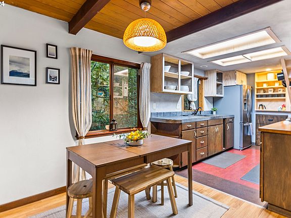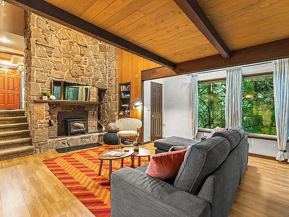 Discover the perfect blend of vintage charm & natural beauty in this 1970's cabin, situated along the Washougal River. Surrounded in old growth timber, soothing river sounds, & cozy comforts of a rustic retreat. Fully furnished, this is not only a personal haven but also an excellent short-term rental opportunity. Experience the charm of riverside living while generating income from those seeking a fully-equipped getaway. As you enter, the vaulted ceiling in the living room creates a bright, spacious, & open environment. Large windows frame the stunning views, providing a perfect setting for relaxation & entertainment. The cabin's quaint kitchen is equipped with modern essentials for meal prep. 2 - bedrooms accommodate a total of 3 - beds, ensuring a comfortable nights sleep for up to 6 - guests. Though compact, the bathroom is inviting with an oversized jacuzzi tub. Enjoy the convenience of an on-site laundry room with an exterior entrance, perfect to drop wet towels after a day on the river. Head outside & take a short walk to the private staircase leading directly to the Washougal River. Here you can enjoy soothing sounds of the water, fish, or simply relax on the riverbank. Neighborhood residents can enjoy miles of walking trails & have deeded access to a private sandy beach & swimming hole. This property has a great storage building to place all of your recreational equipment & tools. The private circular driveway could accommodate a small RV. Conveniently located, the local Mercantile is just 3-miles away providing easy access to fuel, supplies, & essentials. Looking for more to do? The Columbia River Gorge offers hiking, rock climbing, watersports, & much more! This is a fantastic opportunity to own and/or rent out this timeless riverside escape!