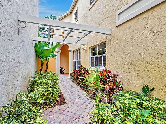 community. Discover this stunning 'Cassandra' model located on the second green of the prestigious Palmer Course in PGA National. This well-appointed home features a master suite conveniently situated on the main floor, making it ideal for convenient one-floor living. Two upstairs bedrooms with Jack and Jill bath. Nestled in the highly sought-after Villa d'Este European themed community. You'll enjoy picturesque cobblestone streets, charming piazzas, and flowing fountains that evoke a old world ambiance. This home boasts numerous updates, including: Roof 2021, HVAC 2020, Remodeled Kitchen 2018. Professionally landscaped, this property is set in a tranquil area within walking distance to the World Class PGA Resort. Villa d' Este Community Pool area offers a lovely pergola patio to enjoy the heated pool and spa, which is perfect for relaxation from dawn to dusk. Gather with friends and neighbors to savor breathtaking west sunsets over the Arnold Palmer course. The home is being offered with negotiable furniture (excluding personal items). HOA fees cover cable TV to enjoy your surround sound system in the living room, Wi-Fi, and a substantial community reserve fund, enhancing the appeal of this beautiful residence. Don't miss your chance to reside in this exquisite home and unique leafy community.