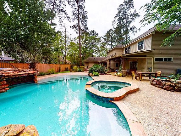 Desirable 4BR/3.5BA + Study with many upgrades including POOL/SPA and OUTDOOR KITCHEN! Located on quiet street in sought-after Sundance neighborhood in Alden Bridge. Zoned for highly-rated CISD schools including BUCKALEW ELEMENTARY. NEW PAINT and beautiful HARDWOOD FLOORING throughout the entire home! GREAT FOR ENTERTAINING! GRANITE counters, double ovens and breakfast bar. Totally remodeled master bath and all upstairs bathrooms. Includes features such as interior FRESHLY PAINTED in neutral palette, oversized garage, surround sound wiring, storm-windows, built-in gas GENERATOR, fenced backyard with sparkling POOL with BEACH ENTRY, SPA, and ROCK WATERFALL! Nearby neighborhood playground & Lakeside Park. Convenient to shopping, restaurants, I-45 and all The Woodlands amenities. HIGH & DRY! LOW TAX RATE!