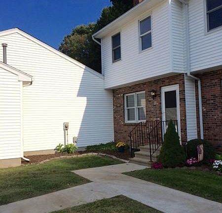Welcome to Vintner Place! A quiet condominium complex off the beaten path yet still close to shopping, dining and other amenities. This is a wonderful end unit allowing for additional natural light on the first floor and extra privacy. The large living room features a wood burning fireplace with stone hearth. Light and bright eat-in kitchen has fresh paint, a new dishwasher, faucet, range hood and lighting along with access to the backyard from the deck. First floor half bath has fresh paint and wainscoting. Second level offers two bedrooms, one with direct access to the full bath. Plenty of storage throughout this home along with an unfinished basement with loads of potential. Garage parking just steps away. Low fees and small pets allowed!