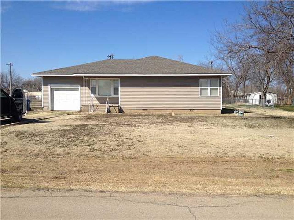 Great condition 1260 sf 2 bed 1 bath on large corner lot located near school with fenced in back yard. New siding, roof, and insulation in 2013. New plumbing and electric and windows in 2004. Storage building and storm cellar.