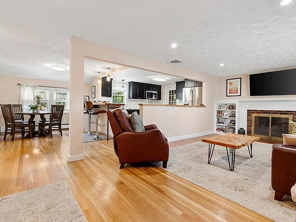 Nestled on an expansive lot at the end of a quiet cul-de-sac, this inviting home offers stylish, convenient living with its beautifully renovated interior & location just minutes to I-95 & some of the best the town has to offer, including Lake Quannapowitt, the Commons, shops, dining & more. The thoughtful 2019 renovations opened the living, dining & kitchen areas, creating bright, welcoming spaces with hardwood floors throughout that add a note of character & charm. Enjoy a cozy LR with built-in shelves & fireplace; a well-designed kitchen outfitted with quartz counters, custom cabs & stainless steel appliances. Dine at the breakfast bar or in the dining area with built-in cabinet & closet. Also offers 2 bedrooms, an updated full bath & 3-season sunroom. Lower level boasts large family room with wet-bar – ideal for entertaining, plus laundry, utilities & ample storage. Step outside to your amazing 14K+ sq ft yard with newer privacy fence, built-in shed & patio w/awning to shade you.
