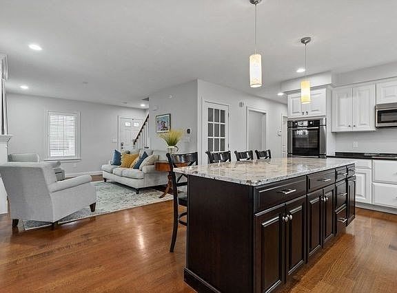 - Features: Closet/Cabinets - Custom Built, Flooring - Hardwood, Countertops - Stone/Granite/Solid, Countertops - Upgraded, Kitchen Island, Cabinets - Upgraded, Deck - Exterior, Exterior Access, Open Floorplan, Recessed Lighting, Stainless Steel Appliances, Lighting - Pendant