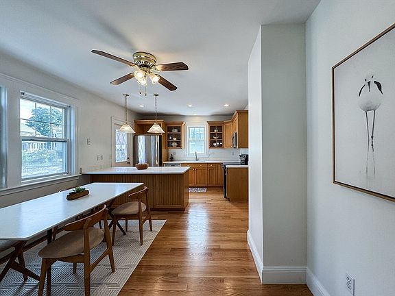 Fall in love with this 3br 2ba single family on a quiet street in the shadows of Tufts University! Craftsman period details abound with hardwood floors and original moldings plus many updates including large, modern, eat-in kitchen with stainless steel appliances and carrera quartz countertops, newer windows, and solar panels. The level fenced yard features composite deck, large patio, and mature fruit trees. And Wedgemere Rd abuts the Tufts campus which allows the owner access to the Steve Tisch Sports and Fitness Center for just $190 per academic year. Just 0.5 miles to the Tufts green line MBTA station and steps to Danish Pastry House, Bob's Italian Foods, and Sei Bar.