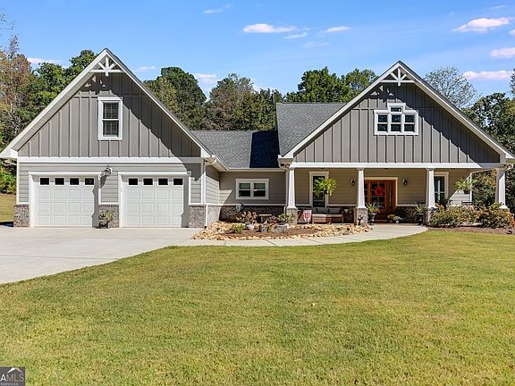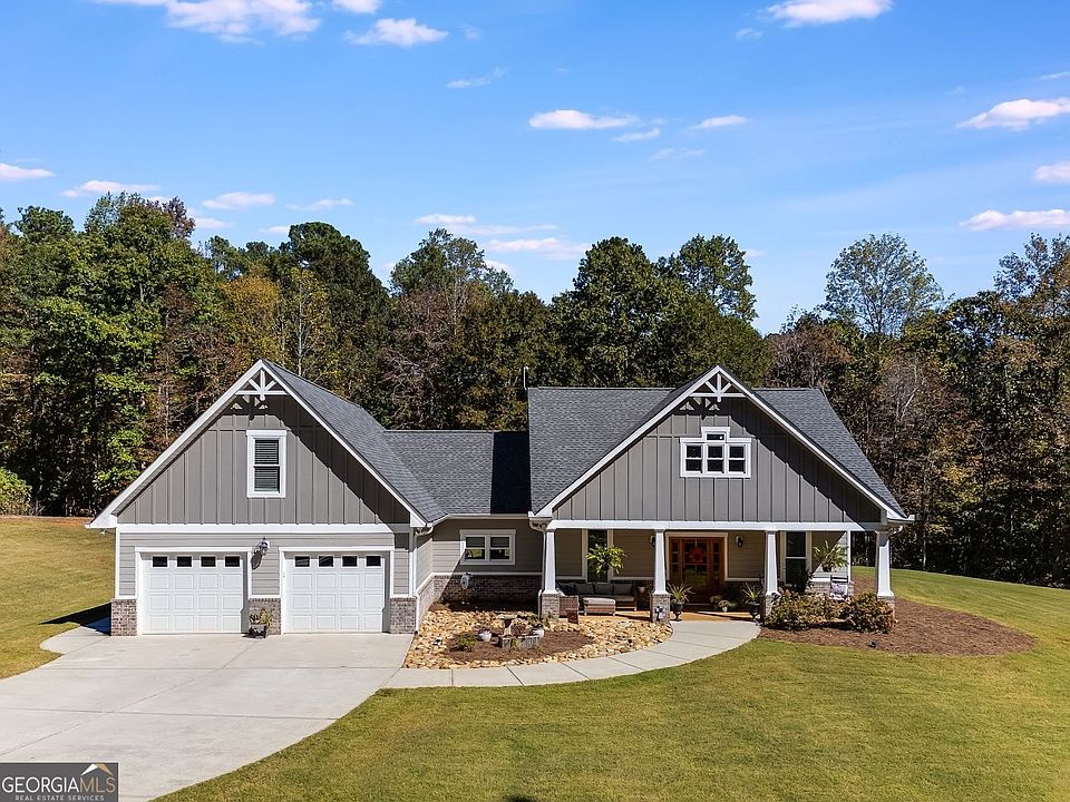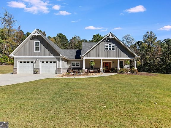 Welcome home to this beautiful custom-built stepless ranch, less than 5 years old, located on a quiet 6-home street in the Central School District! This thoughtfully designed home features granite countertops in both the kitchen and bathrooms, abundant cabinet space, and a peninsula bar that opens to the dining area, perfect for entertaining. The kitchen showcases a charming farm sink with a window view, stainless steel appliances (all included!), and a spacious, open-concept layout that flows seamlessly into the cozy living room with a real wood-burning fireplace and 9' ceilings throughout. The split-bedroom plan offers privacy with the primary suite on one side and guest rooms on the other. The owner's suite includes dual vanities, a soaking tub, tiled shower, and his-and-her closets. The laundry room is conveniently located just off the attached 2-car garage. Energy efficiency abounds with spray-foam insulation throughout, keeping utility costs low. Upstairs, the FROG (Finished Room Over Garage) provides flexible space with HVAC, ideal for a 4th bedroom, home office, or workout area with additional attic storage. Outside, enjoy the craftsman-style curb appeal, featuring HardiePlank siding, architectural shingles, stone accents, and welcoming front columns. The rocking-chair front porch and spacious back porch are perfect for relaxing or grilling, while the flat backyard with a fire pit backs up to undeveloped farmland. Conveniently located less than 4 miles from downtown Carrollton, this home offers the perfect balance of quiet country charm and easy access to schools, shopping, and dining.