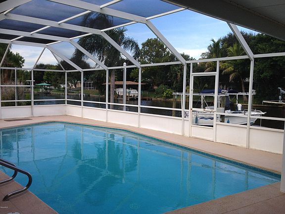 Seller has accepted an offer, but is accepting back up offers. Enjoy the Direct waterfront life in this amazing 3 bed 2 bath 2 car garage canal front pool home. Sip a cool drink overlooking the water from your enclosed pool. Open and airy floor plan with new handscraped laminate flooring in all bedrooms and formal living room. updated kitchen, pool resurfaced two years ago. Large formal living room, as well as a large family room. Reclaimed Sprinkler system, storm shutters, but best of all your own dock on Navigational canal leading to the Banana River with a new 7,500 lb. boat lift. This home is a must see!!!