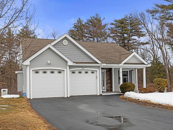 Paradise Estates, Pelham NH! Loaded with upgrades, you will enjoy one level living in this 55+ adult community! This home features a custom kitchen with granite countertops and stainless steel appliances, as well as gorgeous cherry hardwood floors throughout. The sunroom, master bedroom, & living room boast cathedral ceilings, with the living room also featuring a cozy gas fireplace.The master bedroom includes an oversized tiled bathroom. Additional highlights include central AC, interior safety sprinklers, a front porch and a large back deck overlooking the woods. The exterior features lawn irrigation, a community clubhouse. A full basement with a walkout and large windows is partially finished and has a stair lift. The home includes a full-house generator, and an attached two car garage, with upgraded shelving, and epoxy flooring. Minutes to shopping, highways, and local conveniences. No landscaping or plowing required! Located at the end of a cul-de-sac, this is a wonderful opportunity!