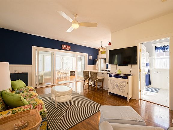 Formally Wyman's Beach, Summer Village Westford is a gated seasonal condo community of single-family cottages nestled around Long Sought for Pond. This 2 bed -1 bath cottage has been meticulously kept & is full of charm, comfort & all the bells and whistles. Large windows, high ceilings, beautiful flooring, ceiling fans, mini-split ac/heat, beadboard walls, pendant lighting & a high end renovation in both the kitchen & bath are just a few of the reasons you'll love this home . Bask in the sun on the large porch, or relax with serene wooded views from the bedrooms. Fully stocked kitchen with gas cooking (new appliances) & water filtration system. In unit laundry. This home can convey fully furnished including your own golf cart! Amazing private outdoor space/gardens/walkways yet only a short distance to all Summer Village has to offer. Private beach, kayaks, canoes, heated pools, tennis, pickleball, basketball, pavilion, private restaurant & bar, general store, hiking, fishing & more