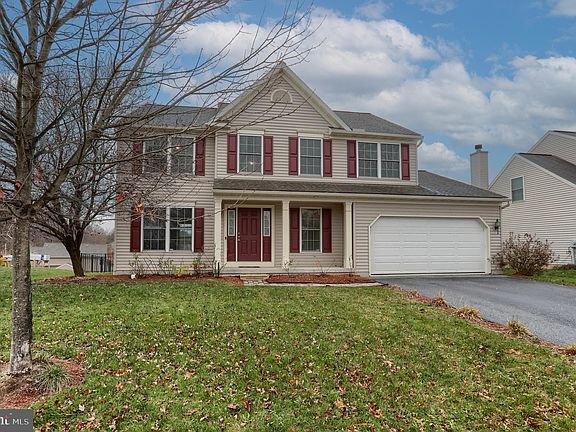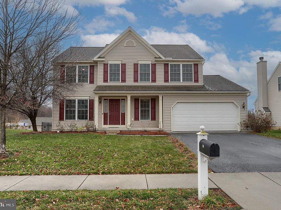 This spacious Pine Ridge Village home is available for quick possession and ready for the holidays! With an open floor plan and plenty of space for entertaining, picture yourself ringing in the New Year in your new home! Welcome your guests into a grand two story foyer with hardwood floors; then step left into a formal living room or flex space. Continue into a formal dining room adorned by chair rail, crown molding and a tray ceiling. The heart of the home is the kitchen and this one is comfortable and functional with an efficient island offering ample workspace plus another breakfast bar peninsula for additional seating. Just off the kitchen are two more wonderful living areas - a bright and cheery sunroom with Southern exposure (an excellent spot to cozy up in the winter by basking in the warm rays)- plus a large family room perfectly connected to the hub of the home allowing for large gatherings while everyone can still feel connected and together! Upstairs you will find a spacious primary suite with vaulted ceilings, a primary bath with comfort height double vanity and soaking tub plus two closets. Rounding out the upper level are three other nice sized bedrooms and a full hall bath. This property sits on one of the higher lots in the community offering lovely views. Bring your own personal touches to the neutral color pallet offered here. Equipped with washer, dryer, stove, microwave, refrigerator and window blinds, it won't take much to be able to move right in and enjoy your new home. The HVAC has been replaced within the last 6 years and a new water heater installed in 2023. In the attached 2 car garage you will find a hook up with wiring in place for a generator (not included). The back yard is secured with a black aluminum fence and there is a paver patio and a raised deck for even more entertaining space outdoors. An unfinished basement features poured walls and an egress window for plenty of natural light. This space provides storage or the potential for even more future finished living area. All this is an active community that stays connected with its own Facebook Page offering a true sense of community. Conveniently located minutes south of I78 for quick commutes east or west. Why wait until Spring to make your move when this amazing opportunity is available NOW!!! Call today to schedule your showing!