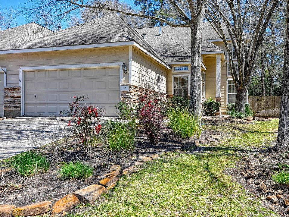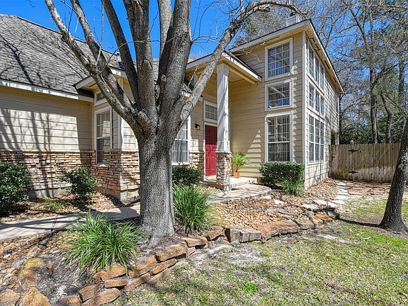 Pristine home that is move in ready! Located in Prestigious Alden Bridge, great backyard maintained by landlord 4 decks wonderful for entertaining. Fresh paint throughout, new carpet, all new stainless appliances, welcoming fireplace with gas logs for those chilly evenings. Spacious high ceilings in living room and a home office with hardwood floors. Easy access to restaurants, shopping walking trails, parks ,swimming pools, tennis basketball courts, lakes and all minutes away., fully fenced is a quiet oasis for bar-b-ques and relaxing. The freshly painted (including the floor)garage has shelving for home good supplies and an extra refrigerator for your use. Lawn care is included in the rent. This home is zoned for the exemplary Buckalew and Woodlands High school. Easy access to I45, the Hardy Toll road, and 99 for easy access to anywhere in Houston and surrounding areas.