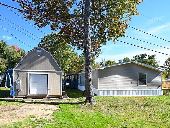 Welcome to this beautifully upgraded double-wide manufactured home in a semi-rural cooperative community. Offering three bedrooms, two full bathrooms, and a versatile bonus room ideal for an office or hobby space, this home combines comfort and practicality. The kitchen, dining area, and main living room feature an open-concept design, creating a bright and inviting space for everyday living and entertaining. This home is bordered by two roads making access and parking easy and plentiful. Recent updates include new modern kitchen cabinetry, updated bathrooms, durable wood composite flooring, and a new stackable washer and dryer. The primary bedroom features its own full bath, while the secondary bedrooms provide flexibility for family or guests. Peace of mind comes with a 2-month-new roof, recent water heater replacement, exterior vapor barrier, heat tape to prevent frozen pipes, and a full-house Generac generator. Enjoy outdoor living on the rear deck or relax in the shade of the covered front deck. An exceptional highlight of this home is the 14’Wx16'Lx 16'H insulated shed with 100 amp service complete with mini-split, and 7-foot-wide roll-up door—perfect for storage, workshop, or hobbies. 4 paved parking spaces. First showings will be at the scheduled open house. This home is move-in ready and waiting for you!