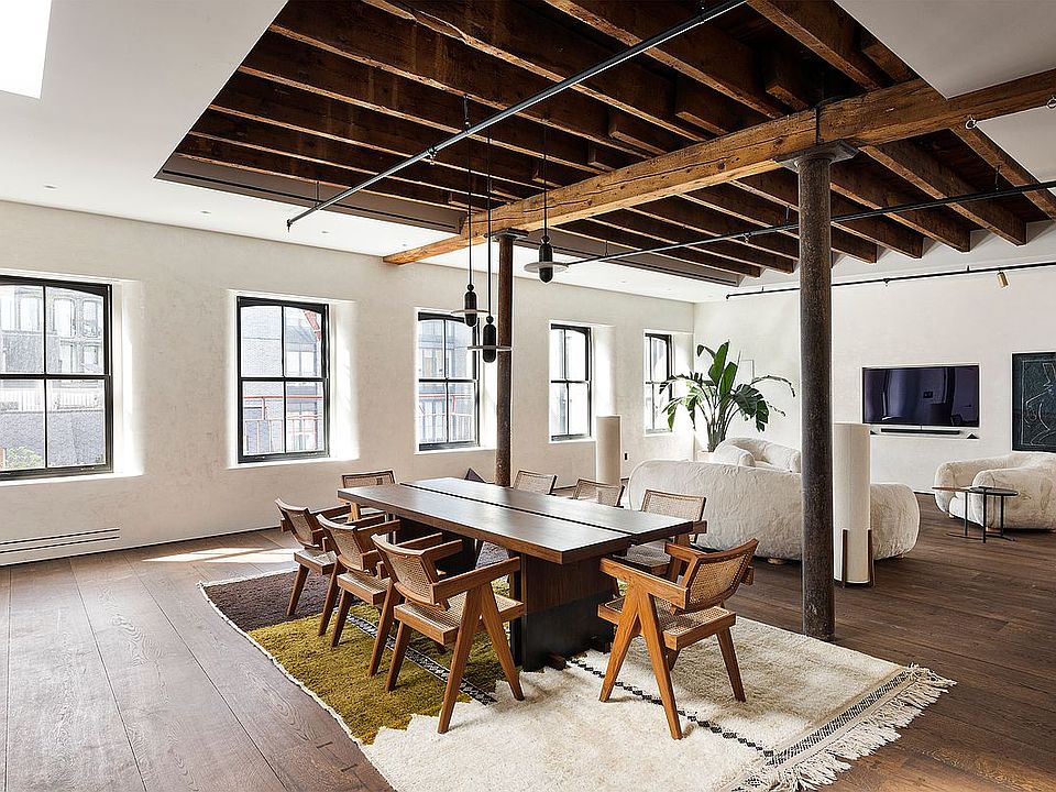 Enter directly via a key-locked elevator, this gut-renovated unit boasts approximately 3,400sf of living space with 3 exposures (north, east, and west), 14 new windows, and 5 skylights, providing ample light throughout the day. With 45" of frontage on one of the most storied cobblestone streets of SoHo, soaring 11" ceilings, and exposed beams and columns, the great room provides an incredible backdrop for living, dining, and entertaining.