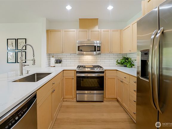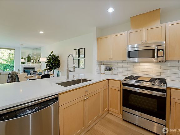 Experience the very BEST of Kirkland in this top floor 1BR/1BA, newly remodeled condo just 1 block from Marina Park and Lake Washington. This home features a private balcony, cozy gas fireplace, a wall of windows for lots of natural light, newly refinished hardwood flooring, new quartz counter tops, fresh paint and fully tiled bathroom (floor to ceiling). Located in a Secure building with gated parking garage, elevator, Fitness Center (with Sauna), and a beautiful lobby with adjoining rooftop deck featuring lake and mountain views. There's not a condominium better suited to enjoy all that downtown Kirkland has to offer than this one! Great dining and shopping just steps away. The HOA is great and reserves are strong.