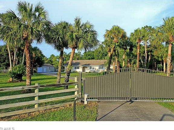 Equestrian opportunity ! A one story ranch style home nestled back from the road behind the private security gates. The entire 5 acres is fenced plus has electic fence. Three fenced pastures with shading areas, six stall barn, tack room, and riding arenas. The main house totally updated, including a new AC System 4 bedroom, plus office, tile floors throughout, 4 baths, spacious kitchen, separate laundry room plus extra refrigerator and freezer in pantry and ample storage. Screened in lanai over looking the peaceful pastures and cypress grove. A separate building with 3 car AC garage, perfect for a work shop. Attached courtyard style stable with soft brick decking, includes 6 stalls, fully equipped tack room and new guest apartment with tile floors,new bath, laundry room, kitchenette. Property includes organic garden, a chicken coop, state of the art irrigation system, private well (reverse osmosis) and septic. Many possibilities to enjoy privacy and the freedom to park your recreational vehicles.