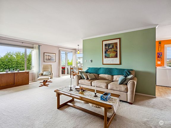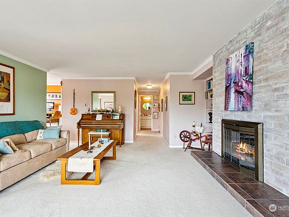 True Edmonds Bowl Location and the only 1 bed room unit under $450k within walking distance to all that makes downtown Edmonds so delightful. Top Floor, walk up, nearly 900 SF 1 bedroom unit for sale featuring enclosed deck with winter Sound and Mountain views, central kitchen, large living room with real fireplace, small eating nook, large bedroom with walk in closet and additional storage. All in a well loved and cared for boutique 9 unit condo with low HOA dues. One covered parking spot, but you will be on foot to town, groceries, restaurants and parks. Listen to seagulls and the Ferry horn from your deck and breath in that sea air - This is what living in one of the top locations in the entire Puget Sound is all about!