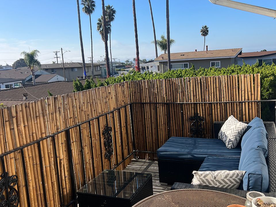 Downtown Area, Upper unit with peak Ocean View. Private deck. Large open living room. Kitchen has lots of storage with nice stainless steel Refrigerator. Two parking spaces one covered. Small storage closet. Walk to the down town area, Linda Lane beach and San Clemente Pier. Close to 5 freeway .