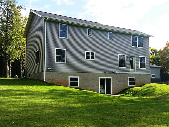 Magnificent country home with over 18 acres to roam and explore. View the outdoors in every room of the home with the large energy efficient windows. Custom built, with a spacious floorplan, there are 4 large bedrooms and two baths on the upper level. The master suite offers a jet tub and granite double sinks. Luxury, durability and functionality! The main level was conveniently designed with a circular path encompassing a family room, dining area, the living/TV room, main level laundry, half bath and the kitchen which is filled with Maple cabinets with premium finish counter tops.(Stainless steel appliances are negotiable), where an island counter separates the huge living area. We can't forget the attached garage. The walk out basement with a patio, offers even more living area and ample designated storage, and another bathroom which is nearing completion. Huge pole building for the "necessities," along with a target range. Buck Lake and the Brule River both nearby for the outdoor enthusiasts. Qualified buyer's come and see for yourself how beautiful this home and it's location is.