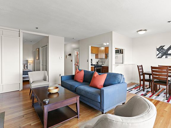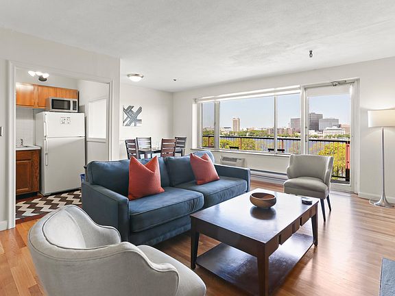 Modern furnished 1 bedroom on Beacon Street in heart of Back Bay, with panoramic views of Charles River and Cambridge from apartment and balcony, apartment has loft like feeling with sliding door separating living room and bedroom, there is dining alcove that seats 4, bedroom is a queen size bed, there is ample closet space, and a built in air conditioner for hot months, kitchen is fully stocked with all essential kitchenwares.