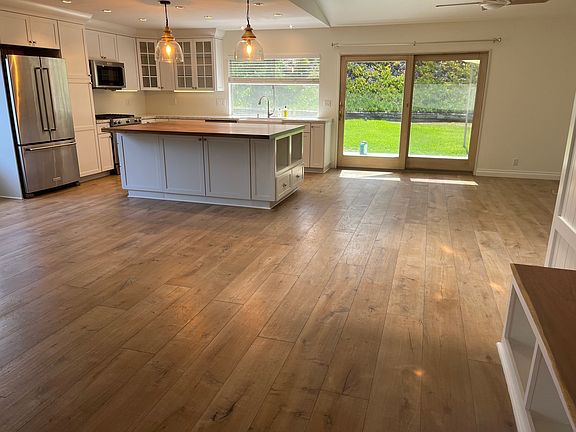 Stunning modern kitchenMassive walnut islandExpansive lotBuilt in wine refrigeratorStainless steel appliances