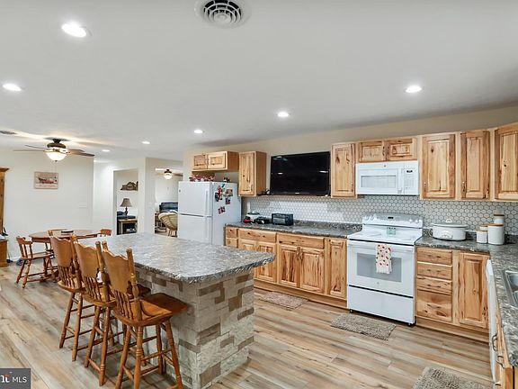 Hidden away in the rolling hardwoods of Hampshire County, this 7.35-acre homestead offers the kind of quiet most people spend years trying to find. Just outside Springfield, this freshly updated home blends modern comfort with that unmistakable West Virginia mountain feel. Whether you’re looking for a retreat from the world or a place to put down roots, this property rises to the occasion. Step inside and you’ll immediately feel the difference. The interior is bright, fresh, and fully updated, with new flooring, recessed lighting, and an open, spacious flow. The kitchen is a standout—custom wood cabinetry, a massive island with seating, modern appliances, and plenty of room to cook, gather, and spread out. Two large living areas give you options: one for relaxing, one for entertaining, both finished with big windows that pull in the mountain light. The home offers two bedrooms and one full bath, including a generous primary suite with its own sitting room—perfect as an office, nursery, or a quiet escape within your escape. A main-level laundry room keeps everything convenient. What really elevates this property are the bonus spaces: a massive storage building and a dedicated workshop/hobby area—spaces every homeowner wants but rarely finds. Outside, the wraparound deck gives you a front-row seat to the wooded surroundings, wildlife, and the changing seasons. The land itself is a gem—7.35 acres of gentle, usable terrain offering total privacy and endless possibilities. And the location is exceptional. You’re just minutes from the South Branch of the Potomac River, opening the door to some of the best recreation in the region: fishing, kayaking, tubing, swimming, and exploring one of West Virginia’s most scenic waterways. A Generac backup generator and a heat pump with central air keep the home comfortable and reliable year-round. And when you need town amenities, you’re in a perfect spot: Winchester, Virginia, is just under an hour away—and Cumberland, Maryland, is also less than an hour’s drive. Major shopping, dining, healthcare, and interstate access are all within easy reach while you still enjoy the quiet of the mountains. This isn’t a project property. It isn’t a fixer-upper. It’s a clean, comfortable, beautifully updated home sitting on more than seven acres in one of the most peaceful corners of the county—just minutes from the river and surrounded by opportunity. If you’re looking for space, privacy, and a place that simply feels right the moment you pull in, this one deserves your attention.