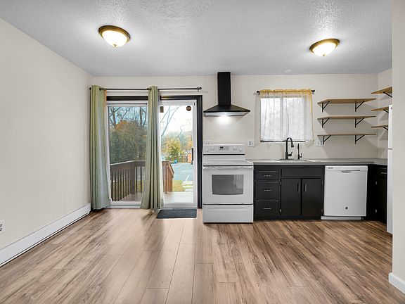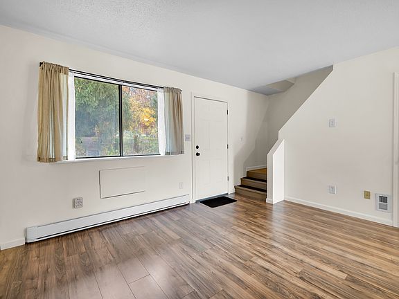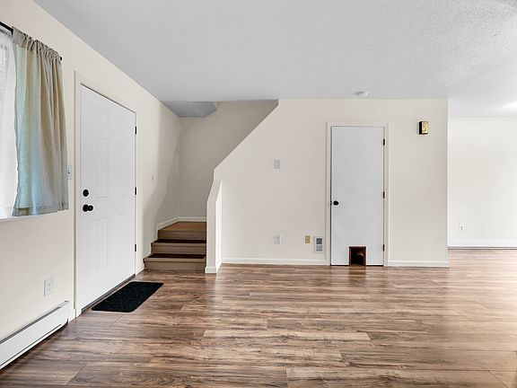 Welcome to this bright and updated townhouse in a quiet Bristol neighborhood. The main level features an open layout with a combined kitchen and dining area that leads directly to a private deck, offering easy access for grilling or outdoor relaxation. The kitchen provides plenty of open shelving and room for everyday cooking and dining. The spacious living area flows naturally from the kitchen, creating a comfortable setup for both relaxing and entertaining. A half bath and convenient entry area complete the first floor. Upstairs are two well-sized bedrooms with ample closet space and a full bathroom. Additional perks include in-unit laundry, a partially finished basement, and assigned parking just outside. Located close to local shops, restaurants, and highways, this move-in ready home offers low-maintenance living in a convenient, central location.
