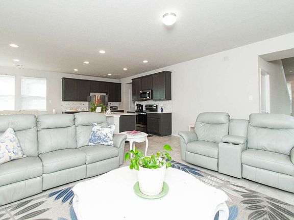 This stunning 2-story home features an open floor plan enhanced by elegant crown molding and recessed lighting throughout. The chef-ready kitchen boasts custom cabinets, granite countertops, a spacious island, and stainless steel appliancesperfect for entertaining. Enjoy remarkable energy efficiency with solar panels that delivered a $23/month average electric bill over the last 12 months. Additional highlights include a dedicated laundry room, generously sized rooms, and a primary suite with double vanity and walk-in shower. Relax in your privately fenced backyard, while the attached front-facing garage offers easy access and storage.