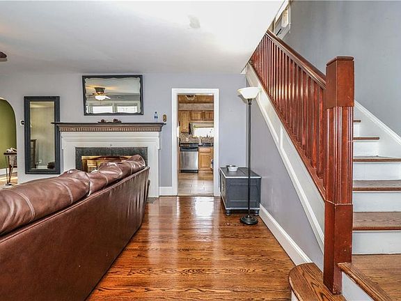 Foyer,LR,DR,EIK,sun porch,1.5 baths,full basement part. fin. w/dry bar & 1/2 bath. New roof, furnace 2 yrs old, 5 car det. garage w/lg loft;screened front porch;large back porch;shared driveway. Close to NYC trains;refinished floors;painted;appliances in as is condition; oil tank insured. Home sold in as is condition.