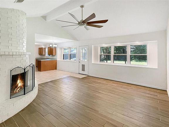 Fenced backyardCovered patioUpdated bathPrivate primary suiteWalk-in closetCozy wood-burning fireplaceVaulted ceilings